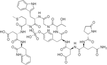 Ceruletide (INN), also known as cerulein or caerulein, is a ten amino acid oligopeptide that stimulates smooth muscle and increases digestive secretions. Ceruletide is similar in action and composition to cholecystokinin. It stimulates gastric, biliary, and pancreatic secretion; and certain smooth muscle. It is used in paralytic ileus and as diagnostic aid in pancreatic malfunction. It is used to induce pancreatitis in experimental animal models.