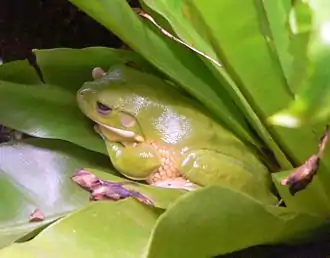 The tree frog Litoria caerulae, formerly named Hyla caerulae.