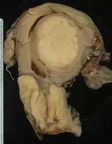 Human papillomavirus infection (HPV) causes more than 90% of cases;[5][6] most people who have had HPV infections, however, do not develop cervical cancer.[3][14] Other risk factors include smoking, a weak immune system, birth control pills, starting sex at a young age, and having many sexual partners, but these are less important.[2][4] Cervical cancer typically develops from precancerous changes over 10 to 20 years.[3] About 90% of cervical cancer cases are squamous cell carcinomas, 10% are adenocarcinoma, and a small number are other types.[4] Diagnosis is typically by cervical screening followed by a biopsy.[2] Medical imaging is then done to determine whether or not the cancer has spread.[2]