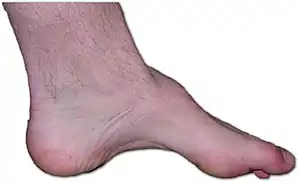 The foot of a person with Charcot–Marie–Tooth disease: The lack of muscle, a high arch, and claw toes are signs of this genetic disease.