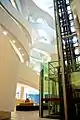 Charles Perkins Centre interior atrium showing the glass elevator