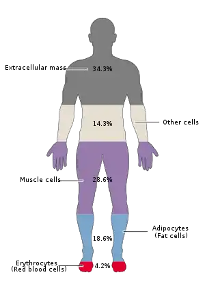 The estimated gross molecular contents of a typical 20-micrometre human cell is as follows:[38]