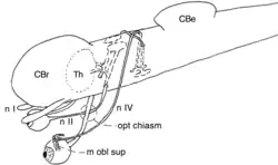 In many vertebrates, the left-eye optic nerve crosses over the right-eye one, without blending.[1][4]