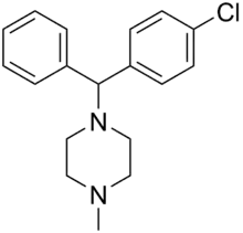 Chlorcyclizine (Di-Paralene, Mantadil, Pruresidine, Trihistan) is a first-generation antihistamine of the diphenylmethylpiperazine group marketed in the United States and certain other countries.[1][2][3] It is used primarily to treat allergy symptoms such as rhinitis, urticaria, and pruritus, and may also be used as an antiemetic.[1][2][3] In addition to its antihistamine effects, chlorcyclizine also has some anticholinergic, antiserotonergic, and local anesthetic properties.[4][5] It also has been studied as a potential treatment for various flaviviruses like Hepatitis C and Zika Virus.[6][7][8]