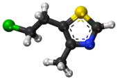 Clomethiazole acts as a positive allosteric modulator at the barbiturate/picrotoxin site of the GABAA receptor. It works to enhance the action of the neurotransmitter GABA at this receptor. GABA is the major inhibitory neurotransmitter in the brain and produces anxiolytic, anticonvulsant, sedative, and hypnotic effects. Chlomethiazole appears to also have another mechanism of action mediating some of its hypothermic and neuroprotective effects.[2] The oxazole homologue is also known[3] providing a little QSAR information.