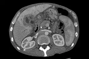 Ultrasound of the liver and biliary tree is often used as the initial imaging modality in people with suspected obstructive jaundice.[48][49] Ultrasound can identify obstruction and ductal dilatation and, in some cases, may be sufficient to diagnose cholangiocarcinoma.[50] Computed tomography (CT) scanning may also play an important role in the diagnosis of cholangiocarcinoma.[51][52][53]