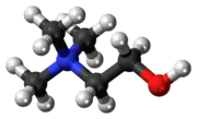 Choline is a family of water-soluble quaternary ammonium compounds.[5] Choline hydroxide is known as choline base. It is hygroscopic and thus often encountered as a colorless viscous hydrated syrup that smells of trimethylamine (TMA). Aqueous solutions of choline are stable, but the compound slowly breaks down to ethylene glycol, polyethylene glycols, and TMA.[1]