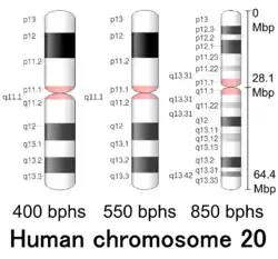 ![]() Chromosome 20 pair in human male karyogram. | |