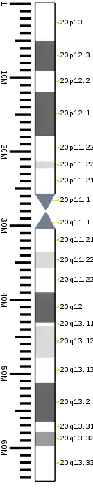 The following diseases are some of those related to genes on chromosome 20:[14]