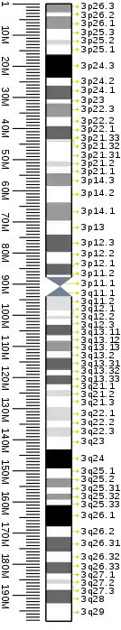 The following is a partial list of genes on human chromosome 3. For complete list, see the link in the infobox on the right.
