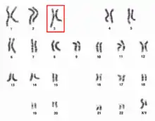 ![]() Chromosome 3 pair in human male karyogram. | |
