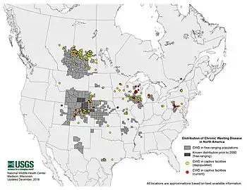 - "Distribution of Chronic Wasting Disease in North America". USGS.gov. 2019-01-31. Retrieved 2019-01-07.