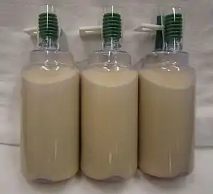 The fluid of a chylothorax may appear milky, serous or serosanguineous. If the appearance of the fluid is not milky, that does not exclude a chylothorax from consideration. Since chyle is rich in triglycerides, a pleural effusion that is rich in triglycerides (>110 mg/dL) confirms the presence of a chylothorax; a pleural effusion that is low in triglyceride content (<50 mg/dL) virtually excludes the diagnosis.[11][12] If a pleural effusion contains triglycerides between 50–110 mg/dL, analysis of the lipoprotein content of the pleural effusion to evaluate for chylomicrons is recommended.[11] If that procedure detects chylomicrons in the fluid, that confirms a chylothorax. Chylothoraces are typically exudative and often contain a high number of lymphocytes and have low levels of the enzyme lactate dehydrogenase (LDH).[11] However, atypical chylothoraces can occur and are transudative in 14% of cases.[11] A milky appearance of pleural fluid is insufficient to confirm the diagnosis of chylothorax as pseudochylothoraces and empyemas can mimic this appearance.[11] Conversely, the absence of a milky appearance does not mean a chylothorax is not present as they may instead appear serous or bloody.[11]