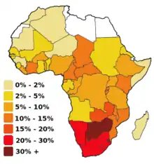 The prevalence of circumcision varies across Africa.[29][30] Studies were conducted to assess the acceptability of promoting circumcision; in 2007, country consultations and planning to scale up male circumcision programmes took place in Botswana, Eswatini, Kenya, Lesotho, Malawi, Mozambique, Namibia, Rwanda, South Africa, Uganda, Tanzania, Zambia and Zimbabwe.[31]