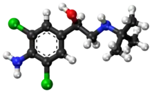 Clenbuterol is a sympathomimetic amine used by sufferers of breathing disorders as a decongestant and bronchodilator. People with chronic breathing disorders such as asthma use this as a bronchodilator to make breathing easier. It is most commonly available as the hydrochloride salt, clenbuterol hydrochloride.[2]