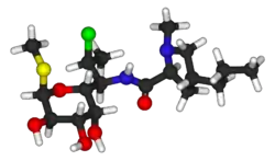 • Cl[C@@H](C)[C@@H](NC(=O)[C@H]1N(C)C[C@H](CCC)C1)[C@H]2O[C@H](SC)[C@H](O)[C@@H](O)[C@H]2O