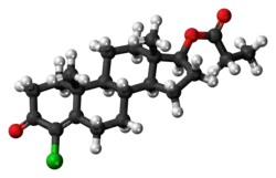 Clostebol propionate (brand name Yonchlon), also known as 4-chlorotestosterone 17β-propionate or as 4-chloroandrost-4-en-17β-ol-3-one 17β-propionate, is a synthetic, injected anabolic-androgenic steroid (AAS) and a derivative of testosterone.[1][2] It is an androgen ester – specifically, the C17β propionate ester of clostebol (4-chlorotestosterone) – and acts as a prodrug of clostebol in the body.[1] Clostebol acetate is administered via intramuscular injection.[2]