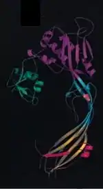 Quite surprisingly, the alpha toxin of C. septicum is not related to the alpha toxin of C. perfringens (another bacterium implicated in the pathogenesis of gas gangrene).[10] C. septicum alpha toxin does, however, exhibit similarities to aerolysin, another beta-pore forming toxin. Alpha toxin and aerolysin share approximately 72% sequence similarity and have numerous functional similarities as well.[13] Both proteins require cleavage by furin, or a furin-like protease, and then oligomerize to form transmembrane pores.[13][14] Similarities between the two toxins have also been discovered through analysis of the crystal structure of aerolysin. Aerolysin is a bilobar protein consisting of four domains (D1-D4).[14] The smallest lobe of aerolysin is missing in the alpha toxin of C. septicum, implying that the alpha toxin is monolobar with three domains, similar to domains D2-D4 in aerolysin.[14] Further research has led to the conclusions that the D1 domain is involved in receptor-binding and the D3 domain functions to prevent premature oligomerization of alpha toxin.[13]