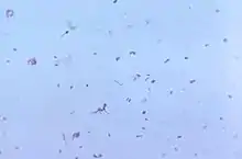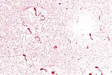Clostridium tertium is a Gram-positive, spore forming, anaerobic bacillus found in the soil and the gut of many animal species, including humans.[3] C. tertium distinguishes itself from other clostridia as a non-toxin producing, aerotolerant, non-histotoxic and non-lipolytic species.[3] Aerotolerant strains of anaerobic bacteria can tolerate oxygen and exhibit growth to some extent in the presence of oxygen.[5] The aerotolerance of C. tertium can lead to its misidentification as Bacillus spp. or Lactobacillus spp.[2] A negative catalase test is an easy tool to differentiate C. tertium from Bacillus spp., which are catalase positive.[2] Also, C. tertium only forms spores anaerobically, as opposed to Bacillus spp., which sporulates aerobically.[2] Other distinct characteristics are its large size (1.5 x 10 micrometers) and its unusual "square" morphology on Gram stained smear.[6]
