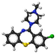 Clotiapine (Entumine) is an atypical antipsychotic[1] of the dibenzothiazepine chemical class.[2] It was first introduced in a few European countries (namely, Belgium, Italy, Spain and Switzerland), Argentina, Taiwan and Israel in 1970.[3]