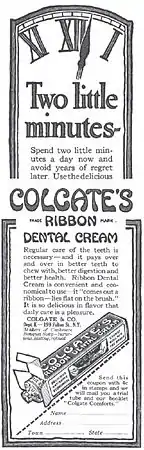 Colgate became popular in the 1950s, with the slogan "It Cleans Your Breath While It Cleans Your Teeth", written by copywriter Alicia Tobin.[3]