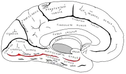 ![]() Medial surface of left cerebral hemisphere. (Collateral fissure labeled at bottom left.) | |