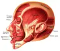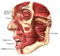 ![]() Muscles of the head, face, and neck. (Nasalis labeled at center left.) | |