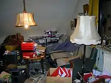 Compulsive hoarding, also known as hoarding disorder,[6] is a behavioral pattern characterized by excessive acquisition of and an inability or unwillingness to discard large quantities of objects that cover the living areas of the home and cause significant distress or impairment.[7] Compulsive hoarding behavior has been associated with health risks, impaired functioning, workplace impairment, economic burden, and adverse effects on friends and family members.[8][9] When clinically significant enough to impair functioning, hoarding can prevent typical uses of space, enough so that it can limit activities such as cooking, cleaning, moving through the house, and sleeping. It can also put the individual and others at risk of fires, falling, poor sanitation, and other health concerns.[10]
