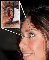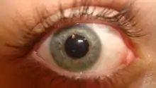 Some colored contact lenses completely cover the iris, thus dramatically changing eye colour. Other colored contact lenses merely tint the iris, highlighting its natural colour.[48] A new trend in Japan, South Korea and China is the circle contact lens, which extend the appearance of the iris onto the sclera by having a dark tinted area all around. The result is an appearance of a bigger, wider iris, a look reminiscent of dolls' eyes.[49]