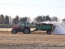 Nitrate can also enter the groundwater via excessive use of fertilizers, including manure spreading. This is because only a fraction of the nitrogen-based fertilizers is converted to produce and other plant matter. The remainder accumulates in the soil or lost as run-off.[32] High application rates of nitrogen-containing fertilizers combined with the high water-solubility of nitrate leads to increased runoff into surface water as well as leaching into groundwater, thereby causing groundwater pollution.[33] The excessive use of nitrogen-containing fertilizers (be they synthetic or natural) is particularly damaging, as much of the nitrogen that is not taken up by plants is transformed into nitrate which is easily leached.[34]