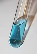 The Bradford assay uses the spectral properties of Coomassie Brilliant Blue G-250 to estimate the amount of protein in a solution.[18] A protein sample is added to a solution of the dye in phosphoric acid and ethanol. Under the acid conditions the dye is normally a brownish colour but on binding to the protein the blue form of the dye is produced. The optical absorbance of the solution is measured at a wavelength of 595 nm. The dye is notable due to its high level of sensitivity, 5 μg of protein is enough to distinguish the difference. However, among the disadvantages of the method is its variability of color development with different proteins: the absorbance change per unit mass of proteins varies with the type of the protein.[19]