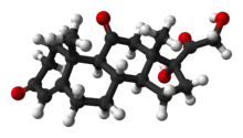 Cortisone is a pregnane (21-carbon) steroid hormone. Cortisone is a naturally-occurring corticosteroid metabolite that is also used as a pharmaceutical prodrug; it is not synthesized in the adrenal glands. Cortisol is converted by the action of the enzyme corticosteroid 11-beta-dehydrogenase isozyme 2 into the inactive metabolite cortisone, particularly in the kidneys. Cortisone is converted back to the active steroid cortisol by the action of the enzyme 11β-Hydroxysteroid dehydrogenase type 1, particularly in the liver.