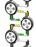 A circuit of fluid in the Loop of Henle—an important part of the kidneys allows for gradual buildup of the concentration of urine in the kidneys, by using active transport on the exiting nephrons (tubules carrying liquid in the process of gradually concentrating the urea). The active transport pumps need only to overcome a constant and low gradient of concentration, because of the countercurrent multiplier mechanism[4]