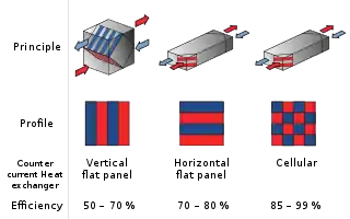 Countercurrent exchange along with cocurrent exchange and contra-current exchange comprise the mechanisms used to transfer some property of a fluid from one flowing current of fluid to another across a barrier allowing one way flow of the property between them. The property transferred could be heat, concentration of a chemical substance, or other properties of the flow.