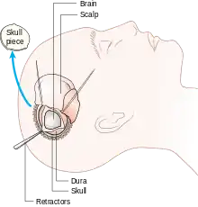 A craniotomy is a surgical operation in which a bone flap is temporarily removed from the skull to access the brain. Craniotomies are often critical operations, performed on patients who are suffering from brain lesions or traumatic brain injury (TBI), and can also allow doctors to surgically implant deep brain stimulators for the treatment of Parkinson's disease, epilepsy, and cerebellar tremor.