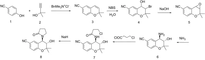 - Ashwood VA, Buckingham RE, Cassidy F, Evans JM, Faruk EA, Hamilton TC, et al. (November 1986). "Synthesis and antihypertensive activity of 4-(cyclic amido)-2H-1-benzopyrans". Journal of Medicinal Chemistry. 29 (11): 2194–201. doi:10.1021/jm00161a011. PMID 3783581.
