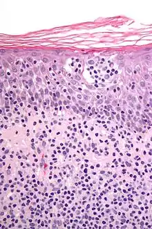 Micrograph showing cutaneous T-cell lymphoma. H&E stain.