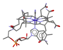 ![]() Stick model of cyanocobalamin based on the crystal structure[1] | |