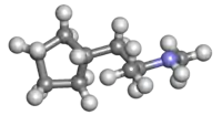 In terms of the acyclic part of the molecule, both cyclopentamine and propylhexedrine are the same as methamphetamine, all three molecules containing the 2-methylaminopropyl side-chain. The difference between them is that whereas methamphetamine is an aromatic molecule containing a phenyl group, cyclopentamine and propylhexedrine are entirely aliphatic and contain no delocalized electrons at all. The effect that this has on potency is that the reduced alicyclic-alkylamines are weaker than unsaturated (meth)amphetamine.