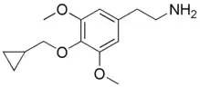 Cyclopropylmescaline (CPM or 4-cyclopropylmethoxy-3,5-dimethoxyphenethylamine) is a lesser-known psychedelic drug. CPM was first synthesized by Alexander Shulgin. In his book PiHKAL, the dosage range is listed as 60–80 mg and the duration listed as 12–18 hours.[1] CPM produces closed-eye imagery, visuals, and fantasies. It also causes enhancement of music.[1] Very little data exists about the pharmacological properties, metabolism, and toxicity of CPM.
