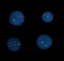 In 1960, Peter Nowell and David Hungerford[21] discovered a small chromosome in the white blood cells of patients with Chronic myelogenous leukemia (CML). This abnormal chromosome was dubbed the Philadelphia chromosome - as both scientists were doing their research in Philadelphia, Pennsylvania. Thirteen years later, with the development of more advanced techniques, the abnormal chromosome was shown by Janet Rowley to be the result of a translocation of chromosomes 9 and 22. Identification of the Philadelphia chromosome by cytogenetics is diagnostic for CML.