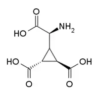DCG-IV is a research drug which acts as a group-selective agonist for the group II metabotropic glutamate receptors (mGluR2/3).[1] It has potent neuroprotective and anticonvulsant effects in animal studies,[2][3][4][5] as well as showing anti-Parkinsonian effects,[6][7] but also impairs the formation of memories.[8][9]
