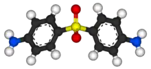 Dapsone, also known as diaminodiphenyl sulfone (DDS),[1] is an antibiotic commonly used in combination with rifampicin and clofazimine for the treatment of leprosy.[2] It is a second-line medication for the treatment and prevention of pneumocystis pneumonia and for the prevention of toxoplasmosis in those who have poor immune function.[2] Additionally, it has been used for acne, dermatitis herpetiformis, and various other skin conditions.[3] Dapsone is available both topically and by mouth.[4]