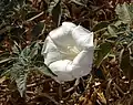 Datura arenicola is a remarkable new species, described only in 2013, of very restricted range and so distinctive as to have merited the creation for it of the new section Discola [not to be confused with the species name discolor] within the genus. The specific name arenicola means "loving (i.e. "thriving in") sand".[17]