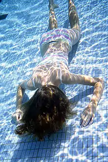 Some scuba diving curricula may apply the terms shallow-water blackout and deep-water blackout differently; deep-water blackout being applied to the final stage of nitrogen narcosis while shallow water blackout may be applied to a blackout from a deep free dive.[9] Nitrogen narcosis does not normally apply to freediving as free-divers start and finish the dive with only a single lungful of air and it has long been assumed that free divers are not exposed to the necessary pressure for long enough to absorb sufficient nitrogen.[3][9][13] Where these terms are used in this manner there is usually little or no discussion of the phenomenon of blackouts not involving depressurisation and the cause may be variously attributed to either depressurisation or hypocapnia or both.[9] This problem may stem from the origin of the term latent hypoxia in the context of a string of fatal, shallow water accidents with early military, closed-circuit rebreather apparatus prior to the development of effective oxygen partial pressure measurement.[4] In the very different context of dynamic apnea sports careful consideration of terms is needed to avoid potentially dangerous confusion between two phenomena that actually have different characteristics, mechanisms and prevention measures. The application of the term shallow water blackout to deep dives and its subsequent association with extreme sports has tended to mislead many practitioners of static apnea and dynamic apnea distance diving into thinking that it does not apply to them even though isobaric shallow water blackout kills swimmers every year, often in shallow swimming pools.