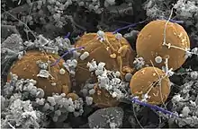 Microbes have been found in sedimentary rocks down to about 3 kilometers, the deepest sampled. There is a lot of diversity, although the deepest tend to be iron(III)- or sulfate-reducing bacteria that use fermentation and can thrive in high temperature and salinity. Even more salt-tolerant halophiles have been found in deep salt deposits, and such deposits are found all over the world.[74] In 2019 microbial organisms were discovered living 2,400 meters below the surface, breathing sulfur and eating rocks such as pyrite as their regular food source.[75][76][77] The discovery occurred in the oldest known water on Earth.[78]