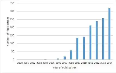 Around 2007, the number of papers referencing the default mode network skyrocketed.[18] In all years prior to 2007, there were 12 papers published that referenced "default mode network" or "default network" in the title; however, between 2007 and 2014 the number increased to 1,384 papers. One reason for the increase in papers is a result of the robust effect of finding the DMN with resting state scans and independent component analysis (ICA).[13][19] Another reason is the DMN can be measured with short and effortless resting state scans, meaning they can be performed on any population including young children, clinical populations, and nonhuman primates.[4] A third reason is that the role of the DMN has been expanded to more than just a passive brain network.[4]