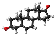 DHEA, also known as androst-5-en-3β-ol-17-one, is a naturally occurring androstane steroid and a 17-ketosteroid.[60] It is closely related structurally to androstenediol (androst-5-ene-3β,17β-diol), androstenedione (androst-4-ene-3,17-dione), and testosterone (androst-4-en-17β-ol-3-one).[60] DHEA is the 5-dehydro analogue of epiandrosterone (5α-androstan-3β-ol-17-one) and is also known as 5-dehydroepiandrosterone or as δ5-epiandrosterone.[60]