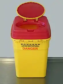 It is crucial that sharp instruments which include: needles, scalers, scalpels, burs, orthodontics bands and endodontic files need to be handled with care and appropriate techniques to minimise any potential sharps injury.[8] Sharps also need to be disposed accordingly into the sharps containers, separate from other disposable bins.[8] The dental assistant needs to be aware of what is required to go into the sharps containers and what is not.[8] This minimises the chance of spreading infectious diseases.[8]