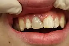 Dental trauma is most common in younger people, accounting for 17% of injuries to the body in those aged 0–6 years compared to an average of 5% across all ages.[44] It is more frequently observed in males compared to females.[45] Traumatic dental injuries are more common in permanent teeth compared to deciduous teeth and usually involve the front teeth of the upper jaw.[46]